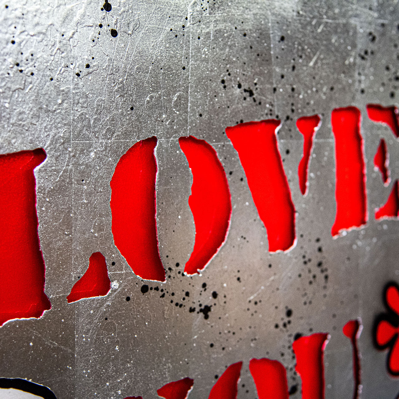 Devin Miles arbeitet mit edlen Materialien wie Aluminium, Edelstahl oder Leinwand, die er mit Blattmetallen, Acrylfarben und Schichten von Lack und Harz kombiniert. Das Ergebnis sind Werke mit außergewöhnlicher Tiefenwirkung, intensiver Farbbrillanz und einem nahezu skulpturalen Charakter. Ikonen der Film-, Mode- und Popgeschichte stehen dabei im Zentrum seiner Bildsprache – neu interpretiert mit einem zeitgenössischen Blick.